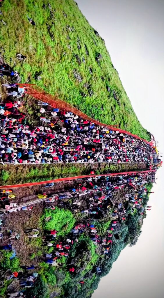 Every year, thousands of devotees tread up the steep 3,000-foot hill to the temple in Bindiga village. The crowd often exceeds 50,000 pilgrims on that day, making it one of Chikmagalur’s most spiritually charged gatherings.