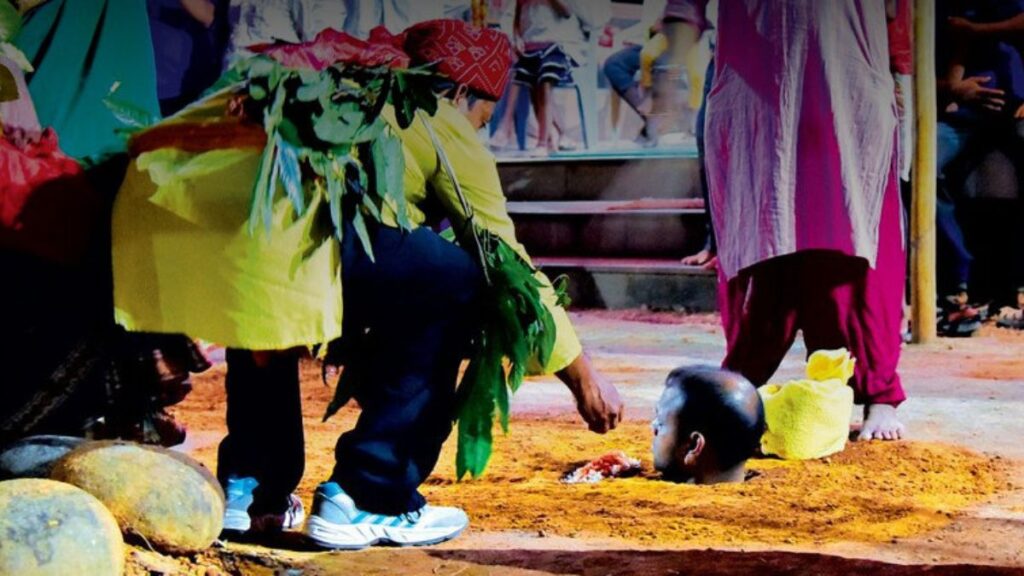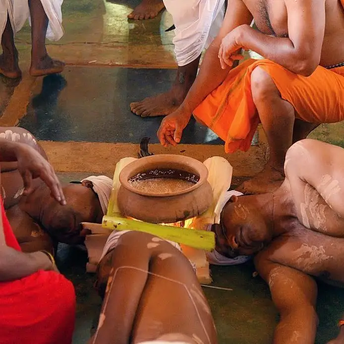 - The Visual: Perhaps the most shocking of all. Three devotees lie down with their heads touching to form a makeshift “stove” (Ranni). An earthen pot is placed on their heads, and a fire is lit on top of them to cook rice.